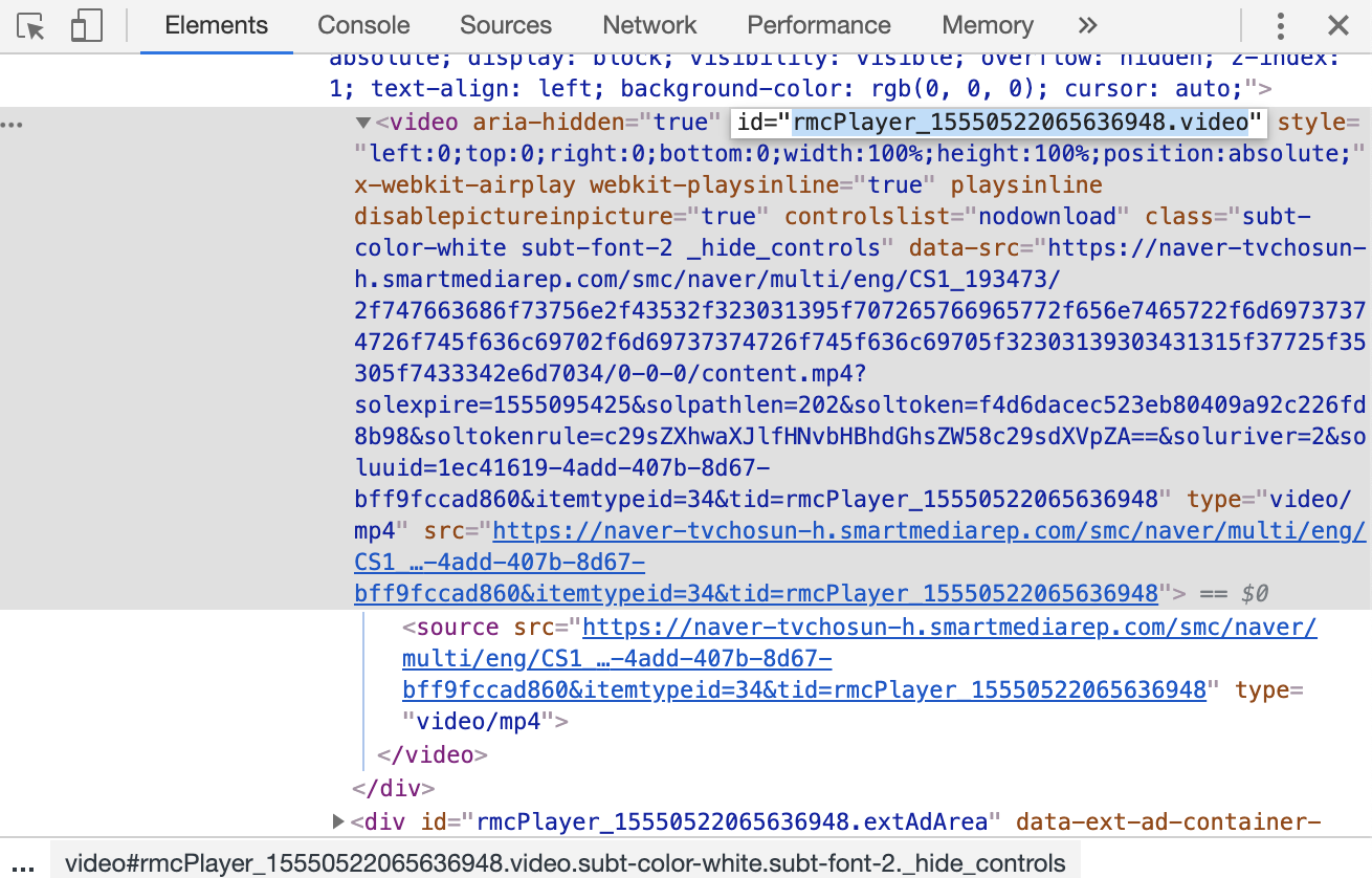 위와 같이 검사 부분을 보게 되면, id = "rmcPlayer_~~~"라고 되어있는 부분이 있습니다.
