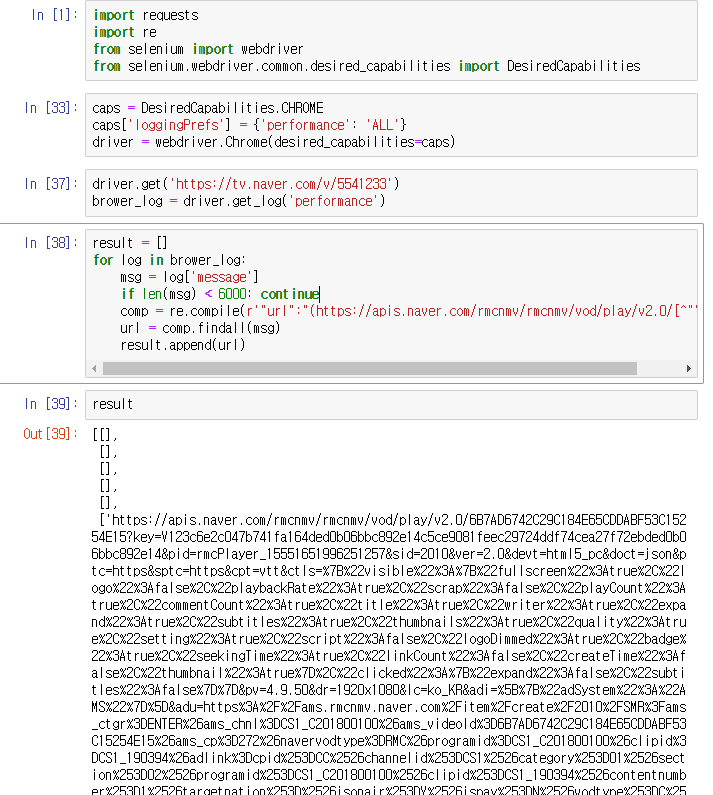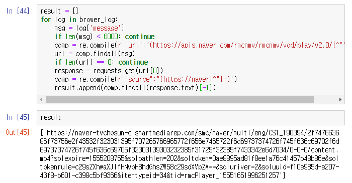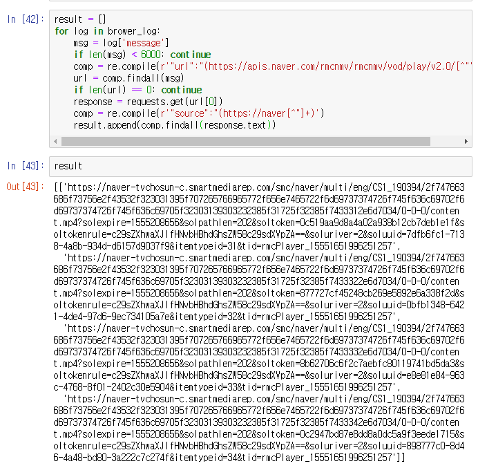 [ "url":"(https://apis.naver.com/rmcnmv/rmcnmv/vod/play ] 라는 내용이 존재해야합니다. 요청메시지의 기본내용이니까요. (혹시 틀리면 나중에 수정하겠습니다.)