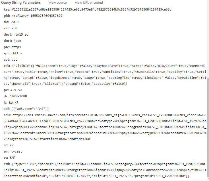 일부 내용은 요청메시지마다 중복되는 것들이겠지만, 영상의 종류에 따라서 내용이 많이 다를 수 있기 때문에 파라미터들에 들어갈 내용을 분석해보지는 않겠습니다.