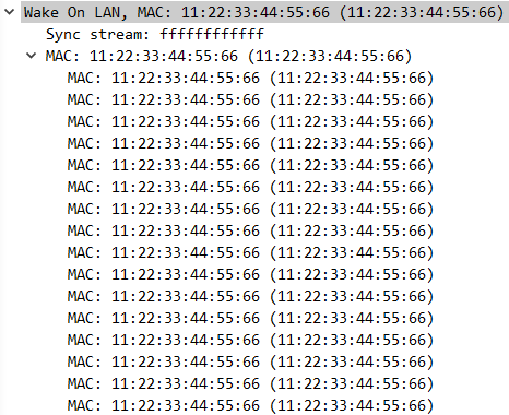 위와 같이 하나의 'Broadcast' + 16개(또는 20개)의 '목적지 MAC 주소'로 이루어집니다.