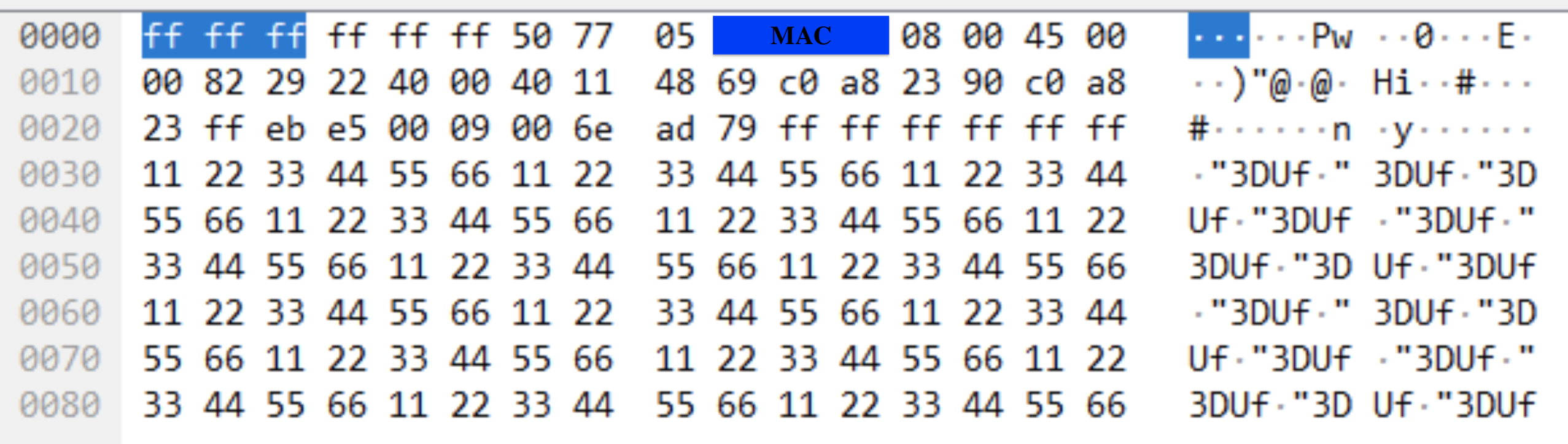 - DA(Dst Mac Address) = 'ff ff ff ff ff ff'
