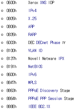 - Ethertype(Ethernet Protocol Type) = '08 00' (IPv4)
