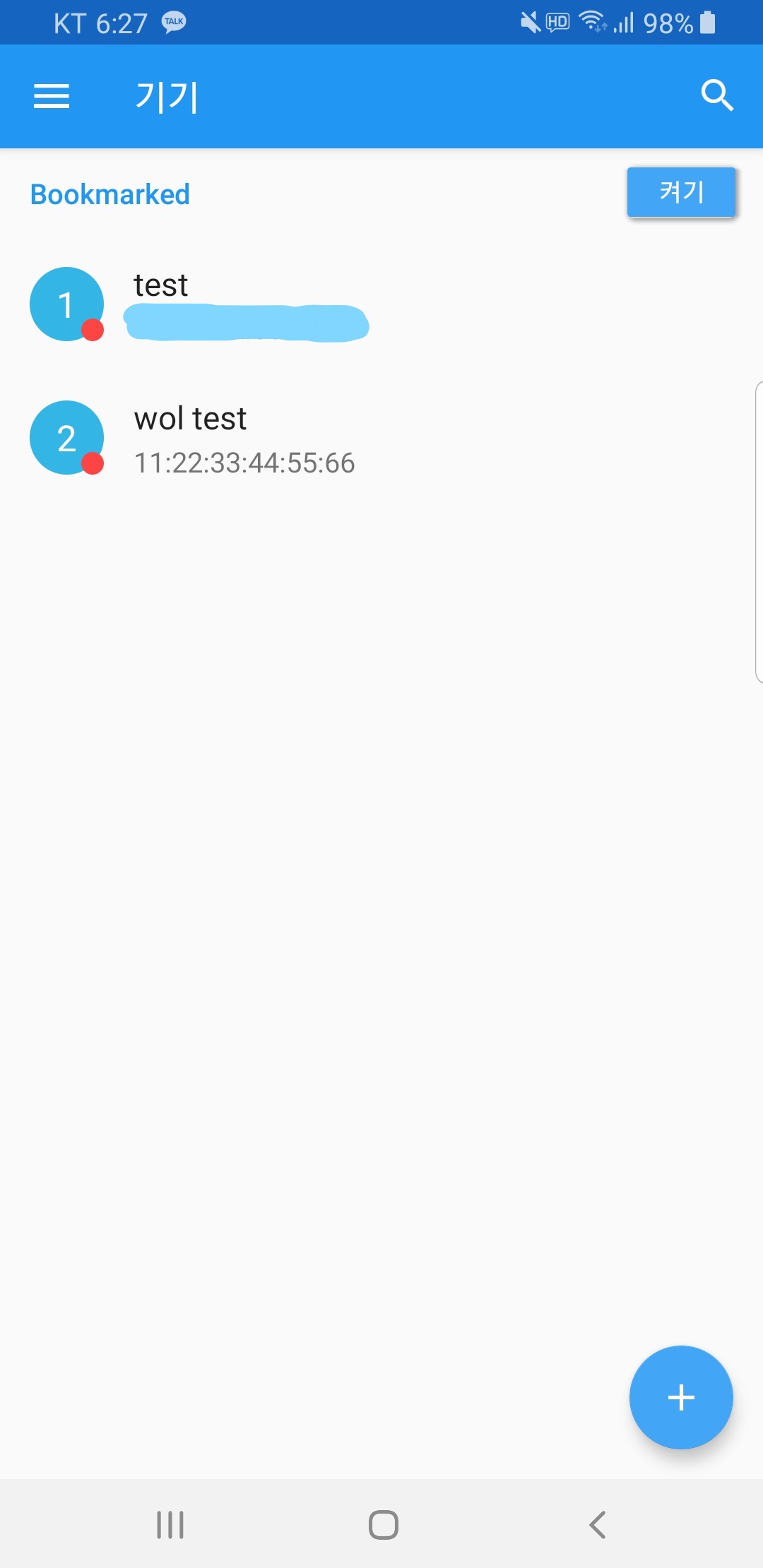 왼쪽에 보이는 것처럼 [wol test]라고 [11:22:33:44:55:66]이라는 맥주소를 갖고있는 컴퓨터에 WOL 패킷을 전송하도록 해주었습니다.