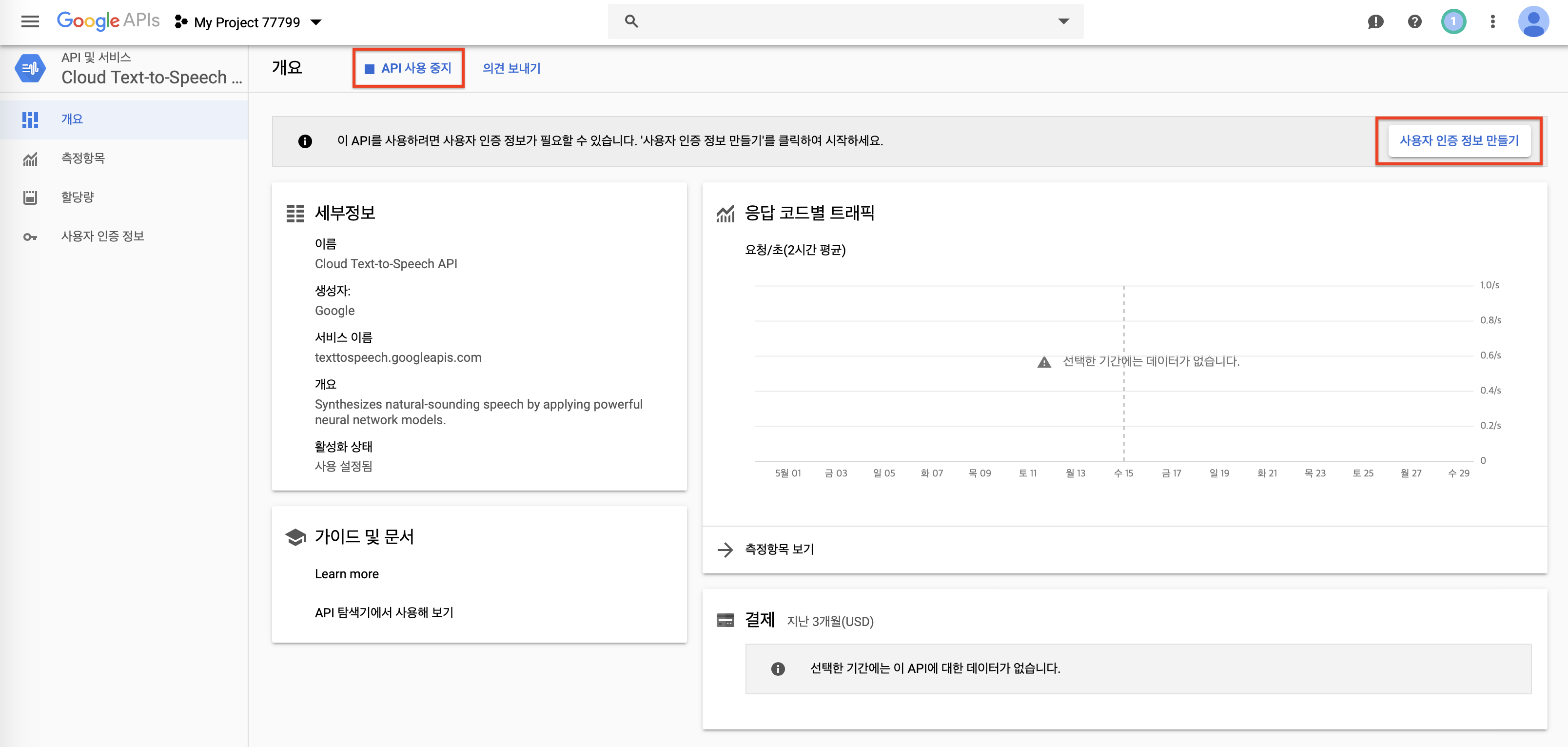 구글 API 등록부터 입력한 문자를 음성으로 저장하는 방법을 정리합니다.
