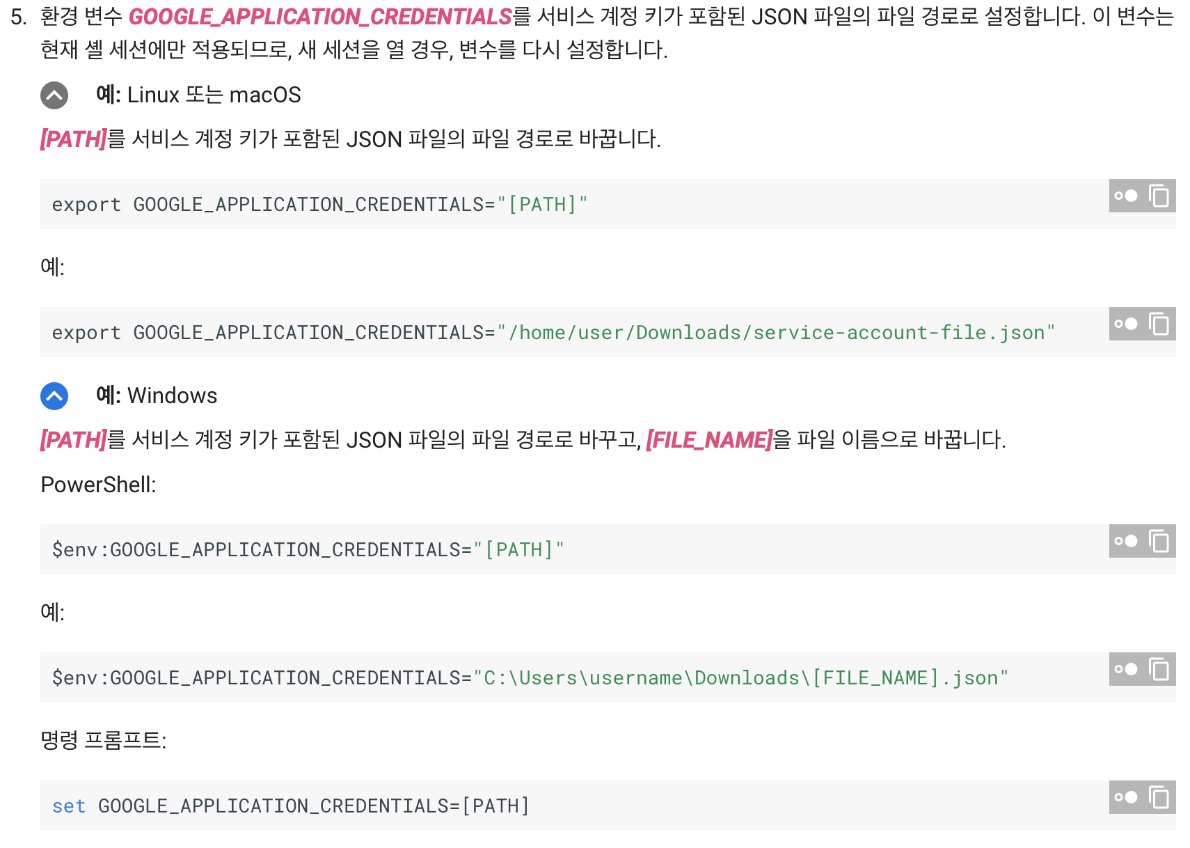 구글은 보안을 위해서인지 API키 파일을 통해 직접 API서버에 접속하지 않고 SDK를 통해서 API를 관리합니다.