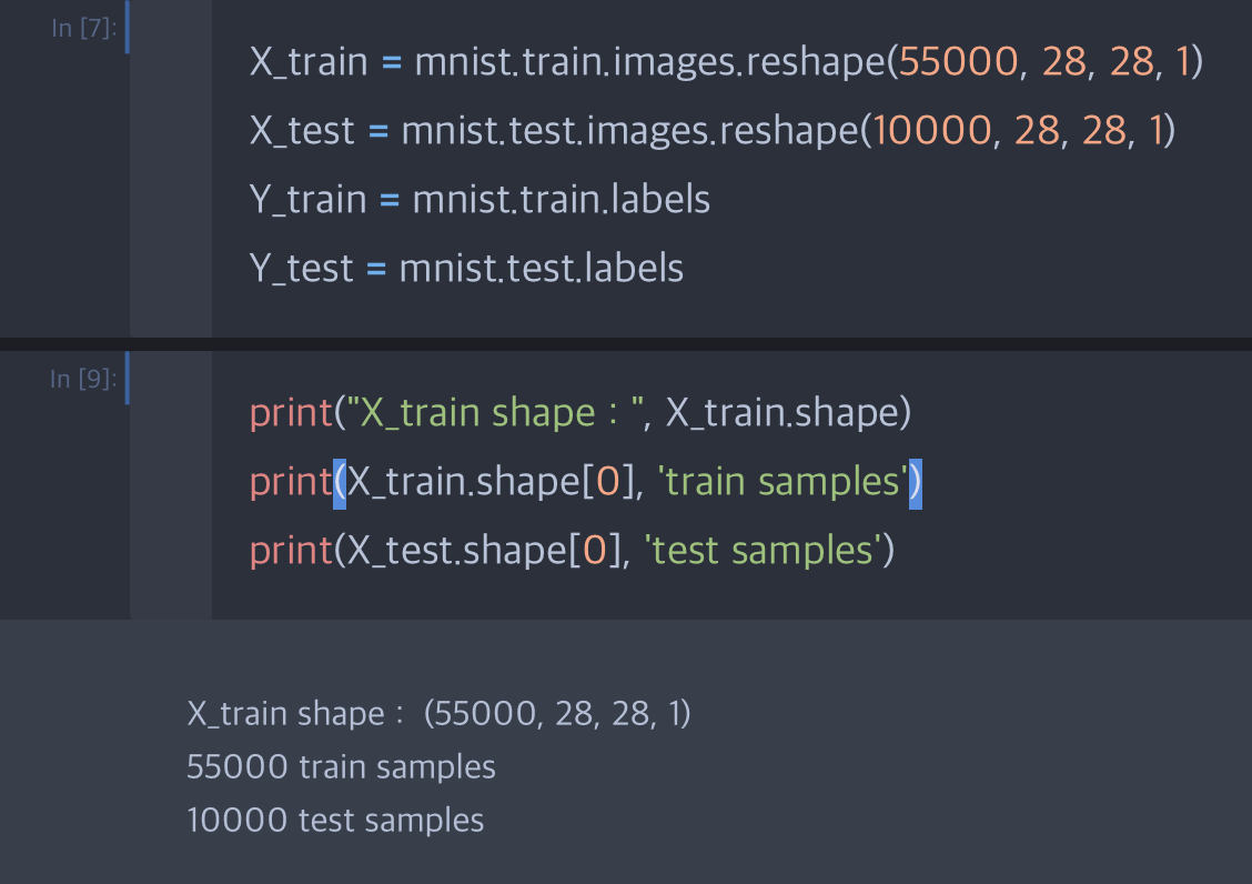 X데이터 = [ 55000개의 이미지, 28x28의 크기, 1개의 채널 ] 을 의미합니다.