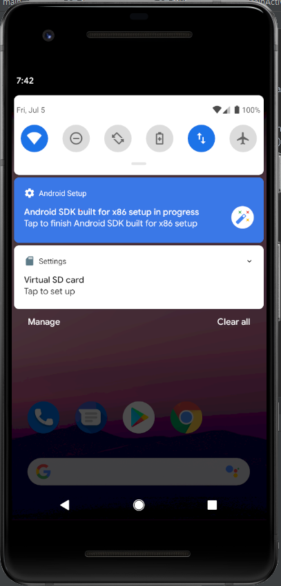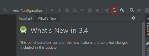 완료되면 프로그램 상단에 아래와 같은 버튼을 볼 수 있습니다. 안드로이드 에뮬레이터를 설정하는 버튼입니다.