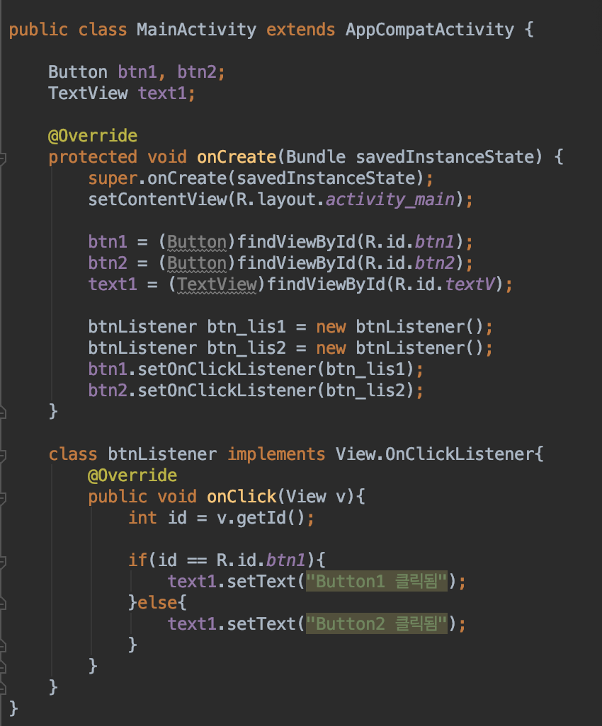 보게되면, 거의 큰 차이는 없고, btnListener 영역에서의 차이가 있습니다.