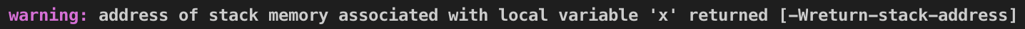 첫번째는 stack 영역에 저장된 값의 주소를 반환한 경우입니다.
