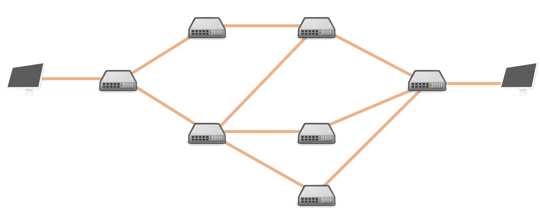 아래와 같은 간단한 네트워크망이 존재한다고 가정하겠습니다.(실제로는 대부분 전화망에서 사용하기 때문에 구성이 조금 다릅니다.)