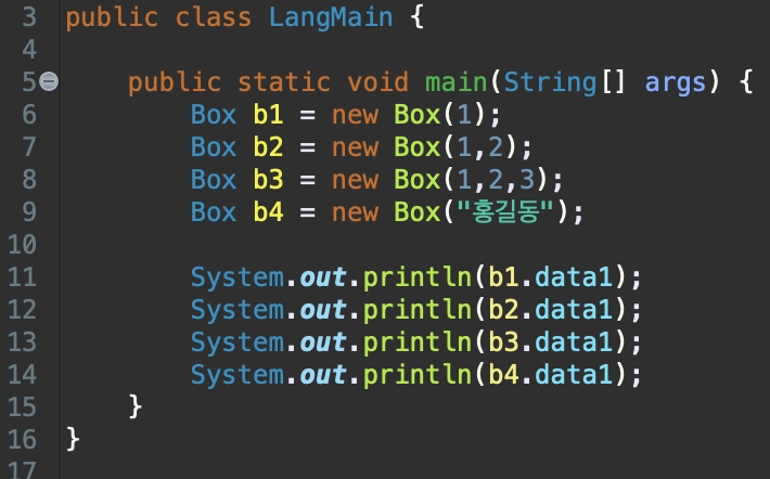 위와같이 Box 라는 이름의 클래스를 만들어 주었습니다.